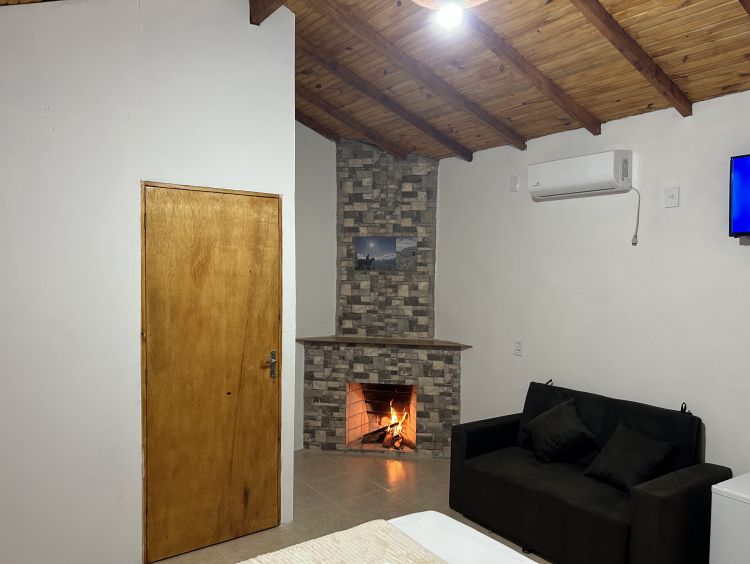 Sua cabana conta com cama de casal e um sofa cama para acomodar mais dois adultos ou duas crianças, frigobar, ar condicionado, lareira, tv tela plana, banheiro, estacionamento coberto ao lado da cabana. Sua cabana tem um toque de rusticidade aliada ao conforto de um bom colchão e um gostoso banho.
